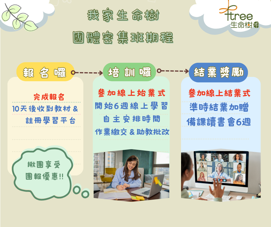 4.社群共學有交流:依照您未來帶領對象,進行線上備課讀書會,透過6次社群共學。